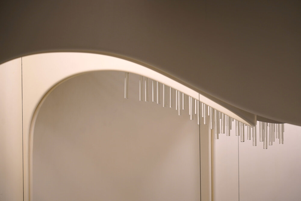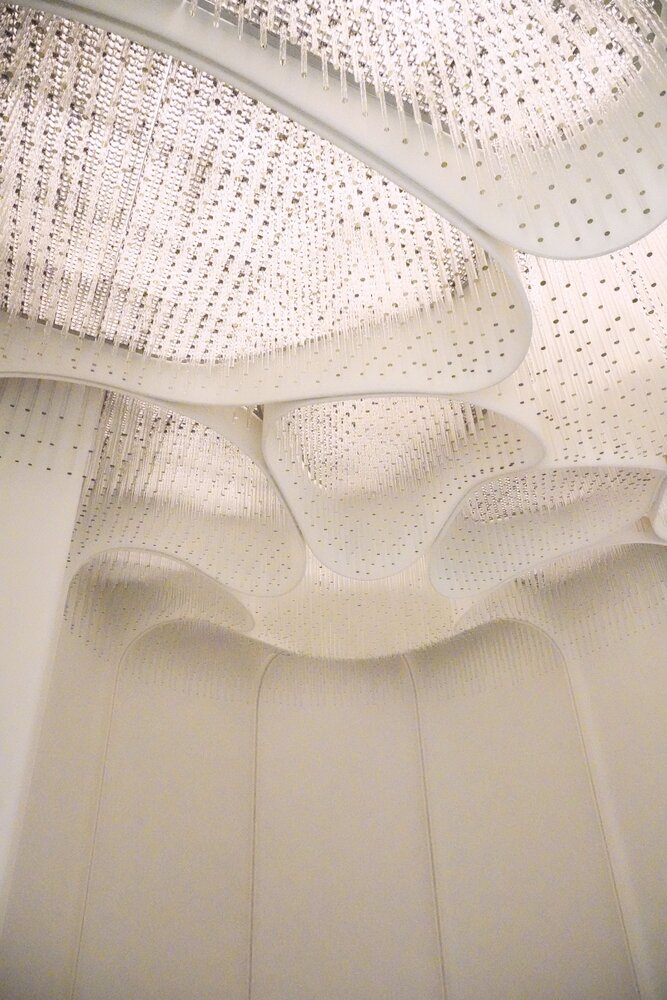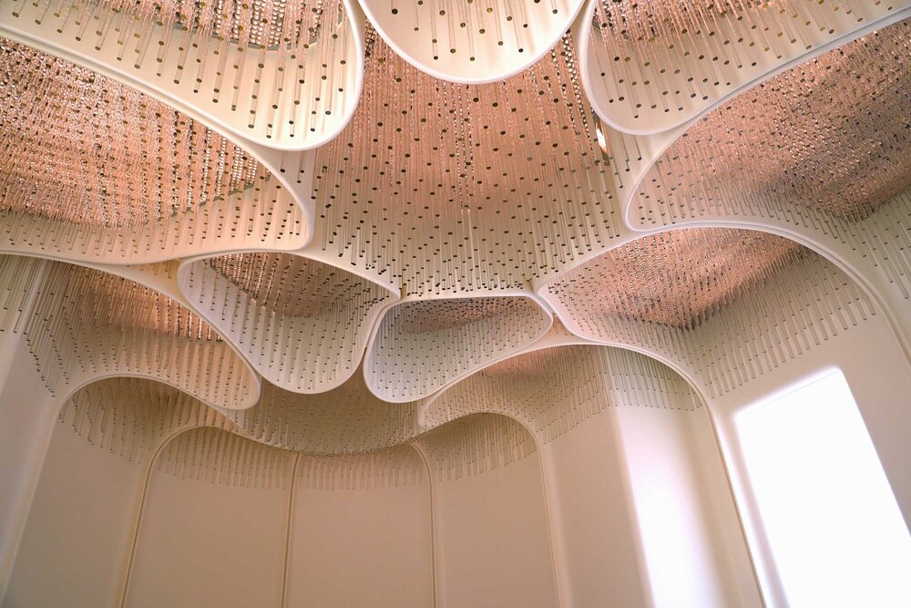 54 ans après la première mise en service, Raphaël Armand engage les travaux de restitution de l’éclairage. Fidèle au projet initial, il fait revivre la salle à manger telle qu’imaginée par Pierre Paulin. « Aborder cette remise en lumière a été d’abord une véritable immersion dans l’univers de Pierre Paulin, dont la vision tridimensionnelle nous transporte au-delà du temps et des conventions habituellement associées à une intervention de restauration d’un système d’éclairage ».