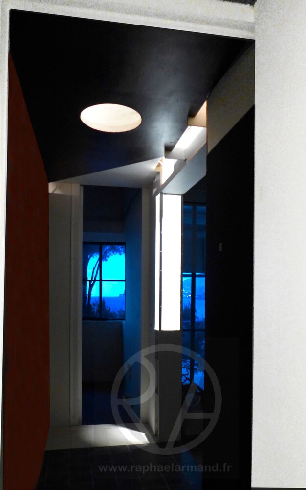 Mon rôle a été de restituer les luminaires disparu suites aux multiples vols et vandalismes subit durant les longues périodes d’abandon de l’édifice. Retransmettre les effets d’éclairage utilisés dans la villa à son origine en les adaptant aux normes de sécurité d’un bâtiment recevant du public.